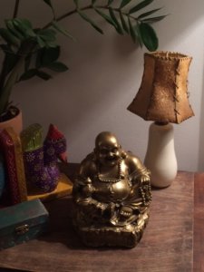 A Buddha ott röhögött szemben velem az Ecserin. Mondom Nektek, bár nyilván látjátok, ez nem nevet, ez röhög. Én úgy képzelem…mindenen. A Buddhát két lángos között láttam meg egy asztalon, a tulajdonosa vérbeli kereskedő volt, egy forintot sem engedett. A Buddha akkor is lehetetlenül drága volt, amikor a harmadik kört tettük meg körülötte, és akkor is amikor a gyerek bevetette legtündéribb kommunikációs formációját és dicsérte a Buddha melletti repülőroncsot. A Buddhát anyám sunyiban próbálta aztán lealkudni és megvenni, de a Buddha tartotta az árát és a röhögését.